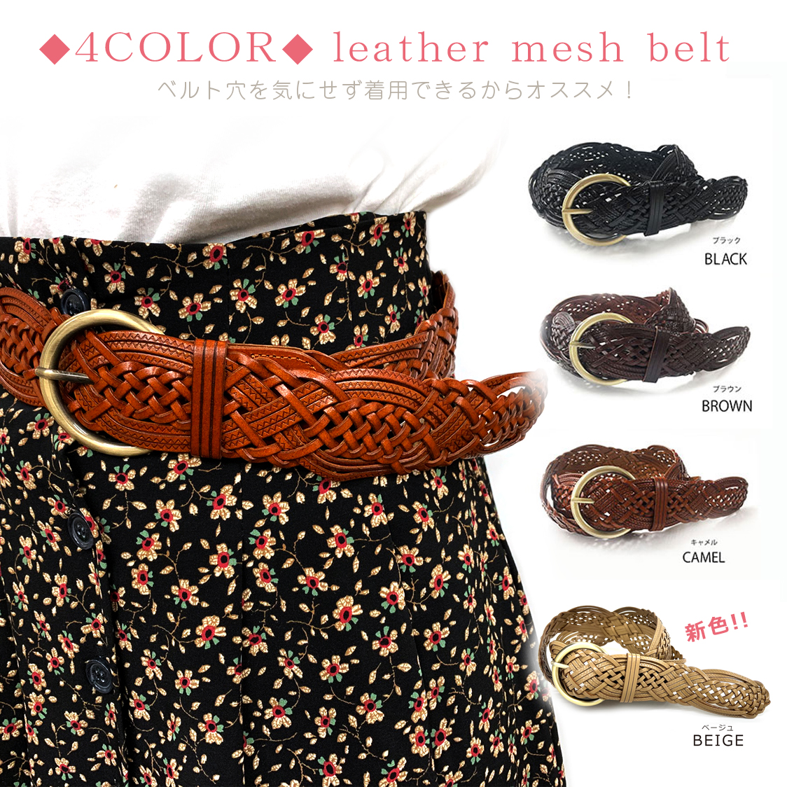 ベルト レディース メッシュベルト 太ベルト 女性 おしゃれ 革 皮 編み込み 幅広 人気 サイズ フリー 送料無料 宅配便のみ s-mesh1