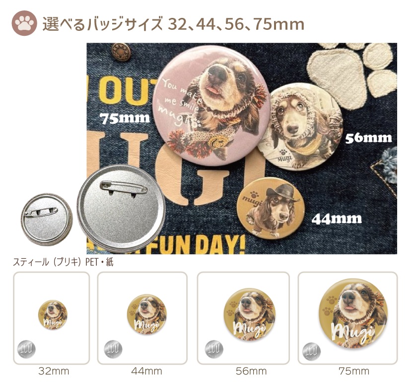 写真で作る 選べるデザイン うちの子バッジ 3個セット
