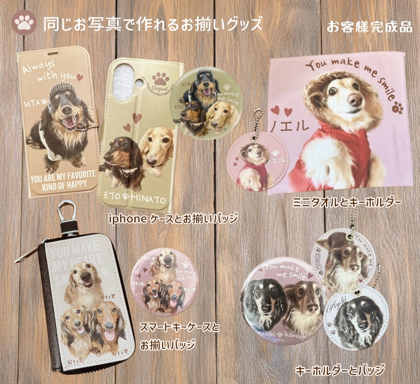 (同時購入専用)写真で作る うちの子シリーズ|お揃いバッジ・PUレザーキーホルダー