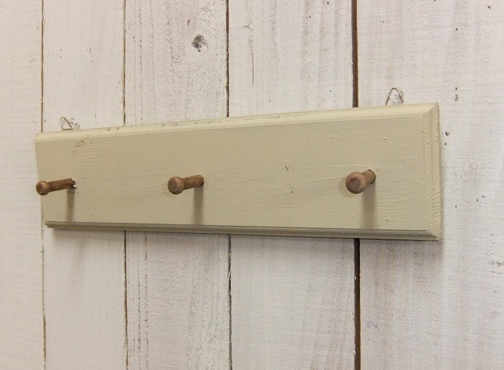 ハンドメイドの壁掛けタイプペグ付3連フック(縁装飾)です。
