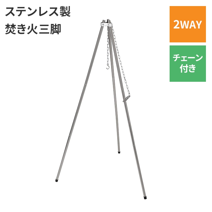 トライポッド 三脚 焚き火 ダッチオーブン 吊るす 下げる 収納袋付 軽量 軽い チェーン 高さ調整 調節 ステンレス 2way M5-MGKPJ03719