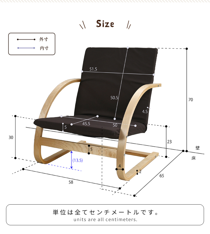 | 幅58×奥行65×高さ70cm (※奥行・高さは角度により多少サイズが異なります) |