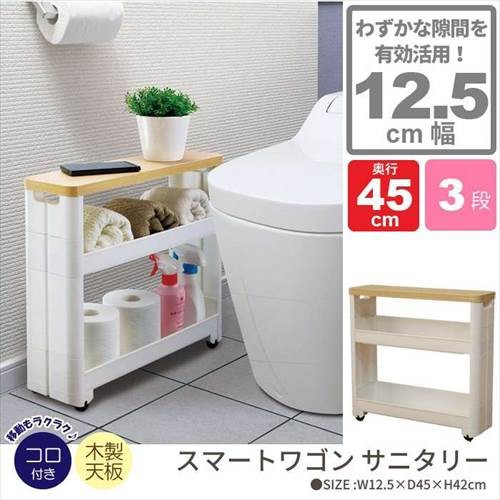 爆買 値下げ トイレ収納 サニタリーボックス トイレラック 隙間収納 キャスター付き スリムワゴン 幅12.5cm 奥行45cm 3段