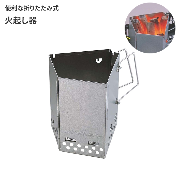 爆買 値下げ 火起こし器 火おこし 折りたたみ コンパクト 幅18.5 奥行19 高さ20.5 煙突効果 炭 着火口付き BBQ 焚き火台 簡単 キャンプ 道具