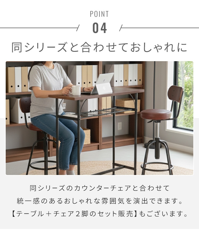 | カウンターテーブル バーテーブル ハイテーブル テーブル カウンター ハイ バー 飲食店 台所 レトロ モダン アンティーク 補助テーブル 作業台 作業テーブル フリーテーブル 棚付き 棚板付き カフェ風 対面キッチン ダイニングテーブル サブテーブル 学習スペース 作業スペース パソコンデスク PCデスク 鉄脚 足置き 木目 ウォールナット 木製 背が高い 壁付け おしゃれ 一人暮らし コンパクト スリム 喫煙所 |