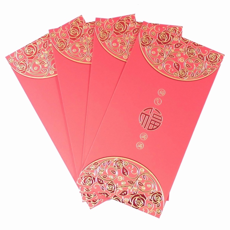 紅包 中国 ご祝儀袋 福39 紅金福 福気満満 薔薇紋 4枚 190g/m2
