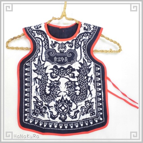 藍染め よだれかけ スタイ 前掛け エプロン あかちゃん 乳幼児用 ボタン留め 全面 長命富貴 藍印花布