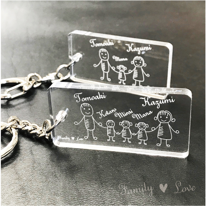 アクリル製 家族 ネーム キーホルダー 誕生 記念 お祝い お揃い お名前刻印【FamilyLove】