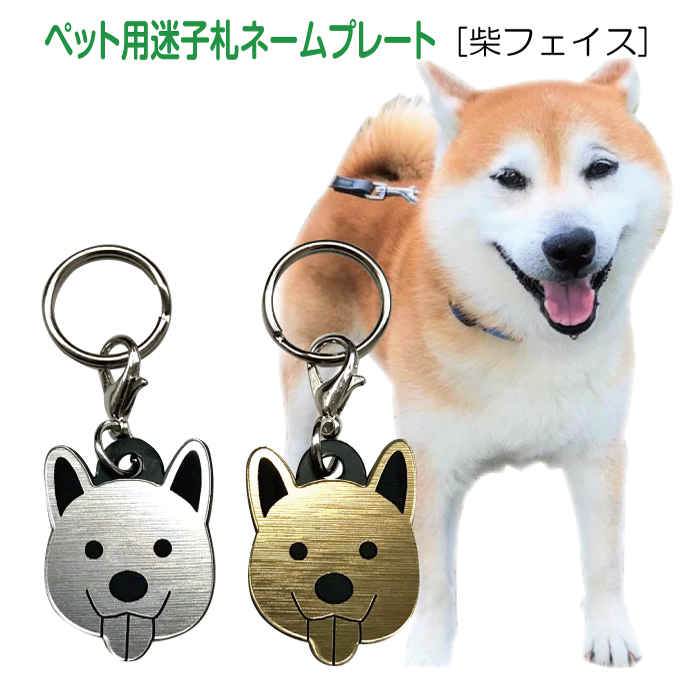 迷子札 軽量 プレート 電話番号 小型犬 名前 アクリル製 柴犬 【柴フェイス】