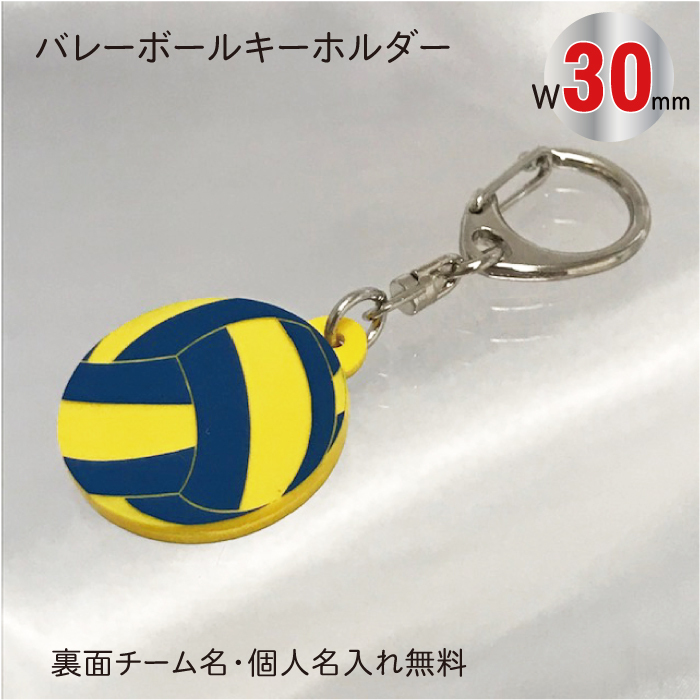 【vb-by30】バレー ボール キーホルダー 青黄 W30mm 名入れ チーム名 アクセサリー 卒団 卒業 記念