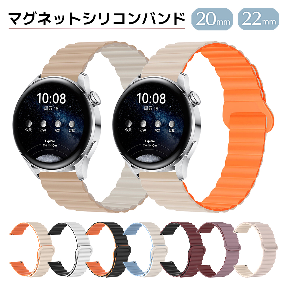 スマートウォッチ ベルト 20mm 22mm 時計ベルト 腕時計 調節可 おしゃれ バンド マグネット シリコン