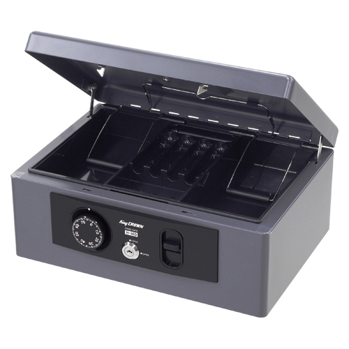 持ち運び、携帯に便利な小型手提げ金庫です。