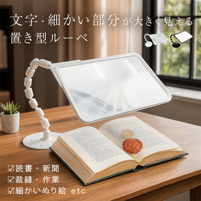 読書用ルーペ(読書用 スタンドルーペ 拡大鏡 両手が使える 手芸 卓上 ルーペ スタンド 置き型) 1-2W