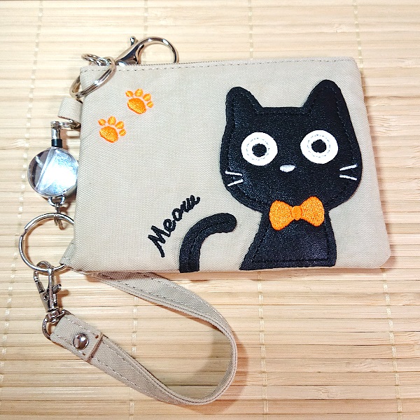 猫のアップリケと刺繍の可愛いパスケースです。