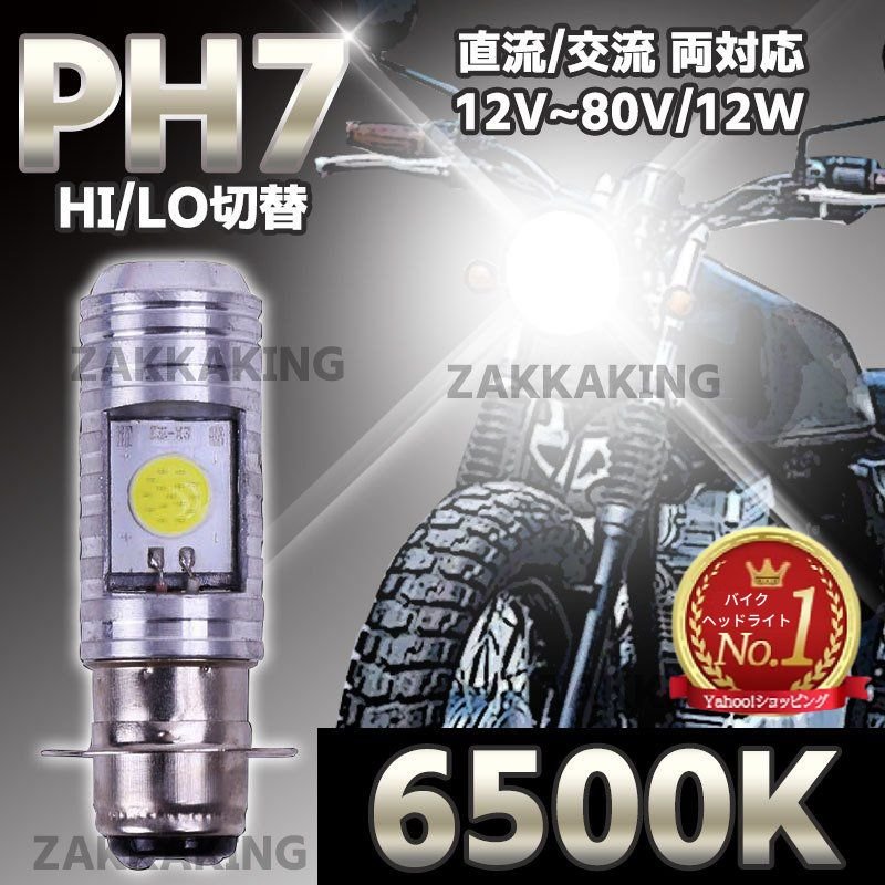 バイク ledヘッドライト led ph7 バルブ ホワイト 原付 スクーター Hi/Lo 切替 COB 汎用 6500K T19L P15d 無極性 直流 交流 ドレスアップ