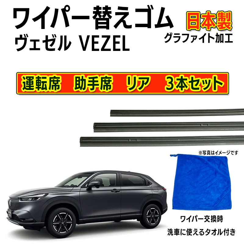 【互換品】ヴェゼル VEZEL ワイパー 替えゴム ホンダ純正互換品 RV3 RV4 RV5 RV6 フロント2本 リア1本 3本 日本製
