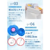 【品質・保管】素材:PA+PE、厚み:60→75ミクロンに改良しました。厚みを上げているので、柔らかく破れにくいので長期保管・再利用可能です。防水・防臭・防カビ・防虫・防塵効果があるので、大事な洋服やシーズンが過ぎた布団を大切に保管できます。