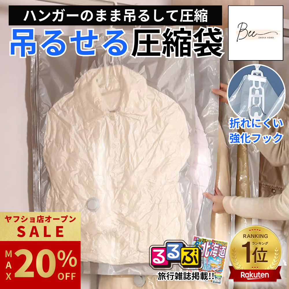 \オープン記念 最大20%OFFクーポン!/ 【るるぶ掲載】 吊るせる圧縮袋 ハンガー 圧縮袋 衣類 吊り下げ 衣類圧縮袋 収納 あっしゅく袋 衣類カバー 押し入れ