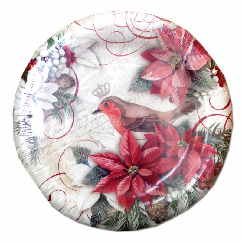 Punch Studio 【クリスマス】 8枚入り ペーパープレート Sサイズ (ポインセチアと鳥)