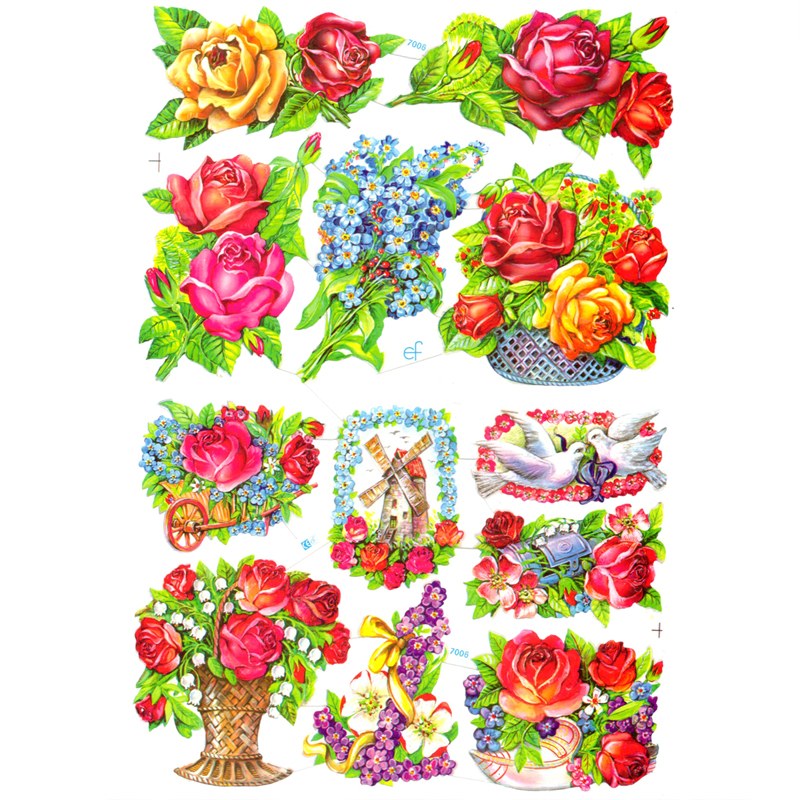ドイツ製 クロモス スクラップシート (薔薇と青い小花) ハンドメイド素材