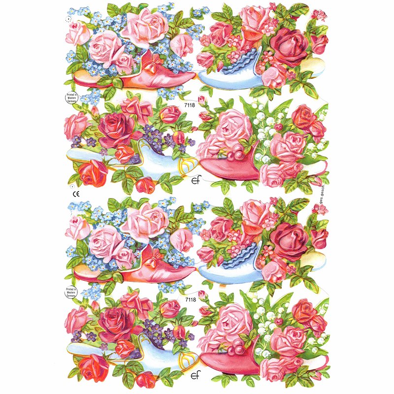 ドイツ製 クロモス スクラップシート (ピンクローズ×スリッパ) ハンドメイド素材