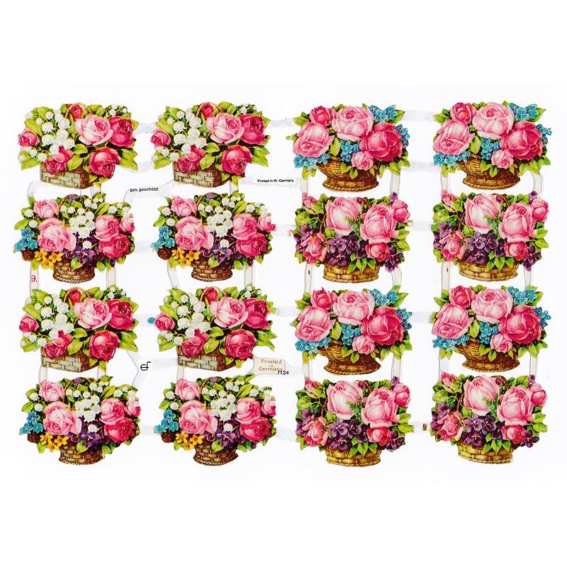 ドイツ製 クロモス スクラップシート (バスケット×ピンクローズ) ハンドメイド素材