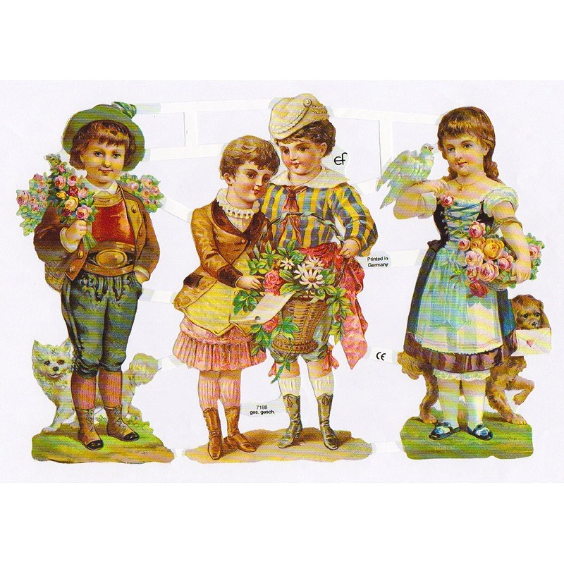 ドイツ製 クロモス スクラップシート (ヴィクトリアンキッズ×犬) ハンドメイド素材