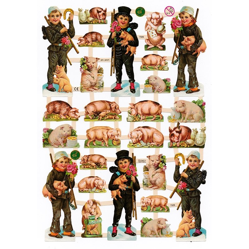 ドイツ製 クロモス スクラップシート (キッズ×ブタ) ハンドメイド素材