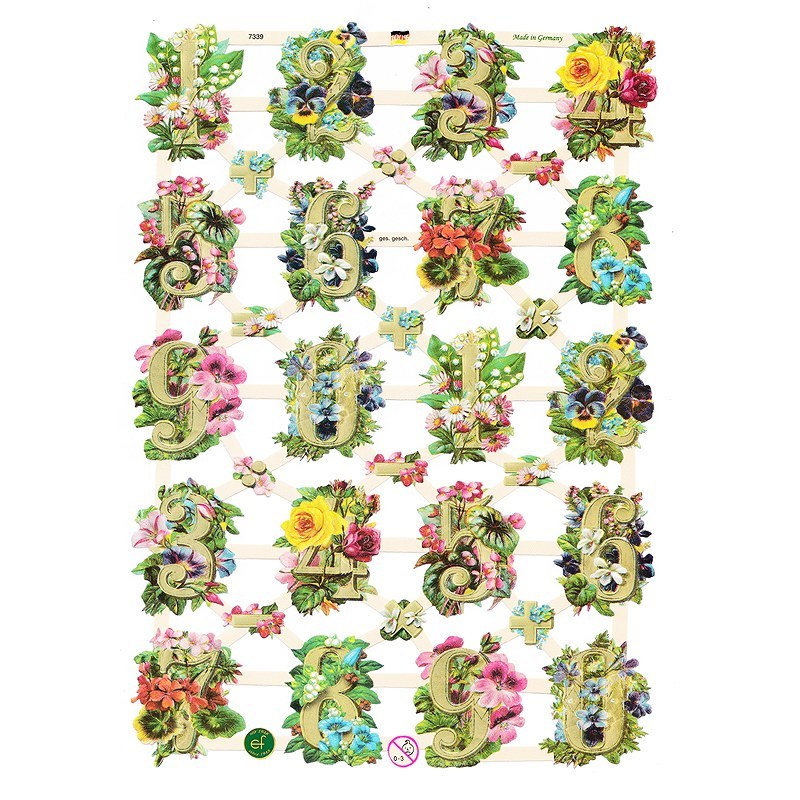 ドイツ製 クロモス スクラップシート (お花と数字) ハンドメイド素材