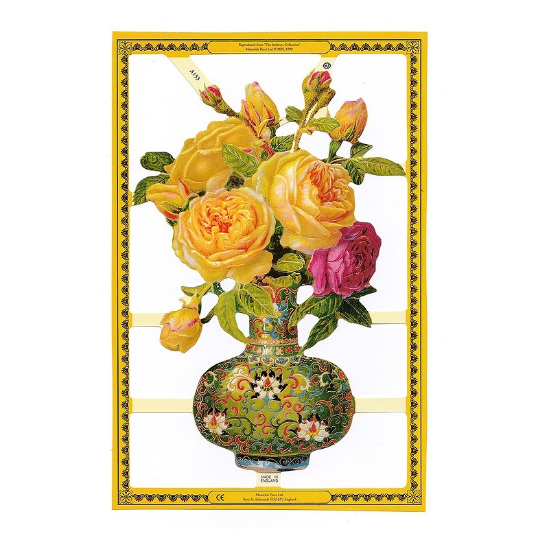 イギリス製 クロモス スクラップシート (薔薇×花瓶) ハンドメイド素材