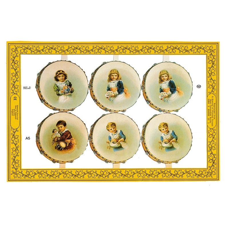 イギリス製 クロモス スクラップシート (タンバリンと子供) ハンドメイド素材