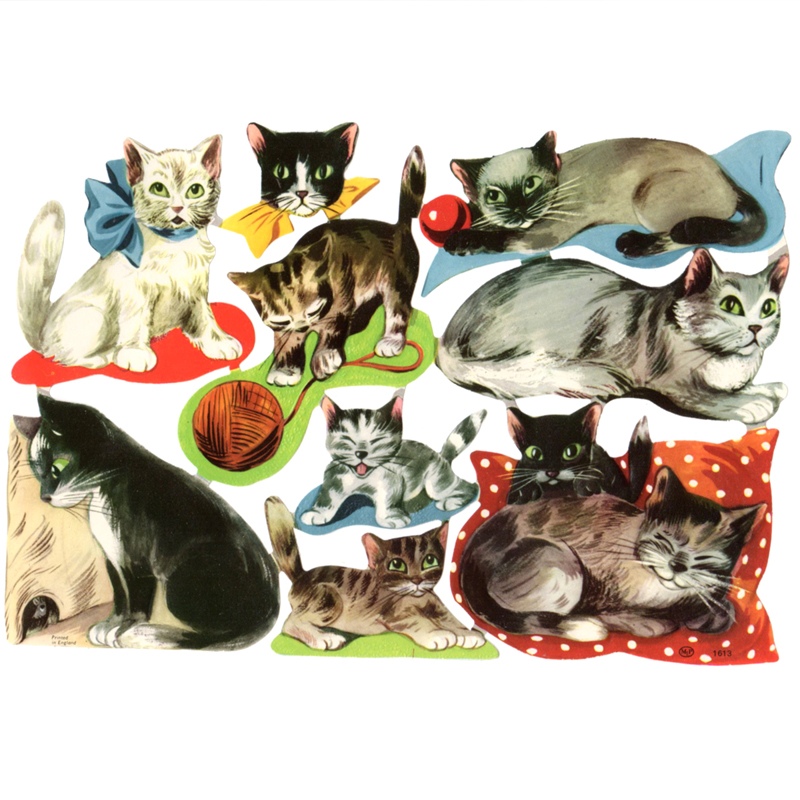 イギリス製 クロモス スクラップシート (色んなネコ5) ハンドメイド素材