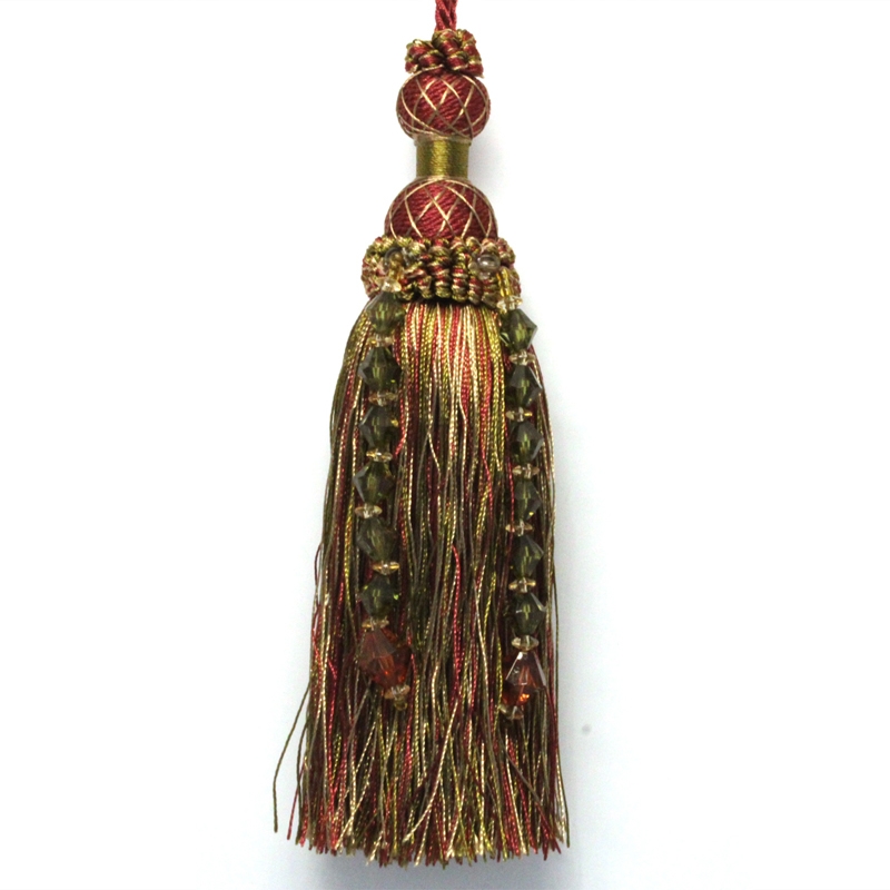 ダークトーンのレッドやグリーンを使った渋くも温かみのある色合いがオシャレなタッセルです。