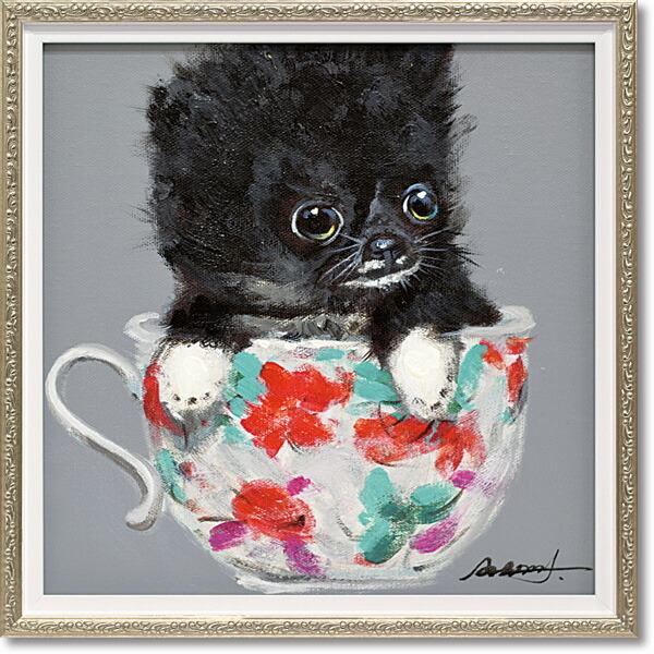 絵画 額入り オイルペイント 「ティーカップ ドッグ2(Sサイズ)」 プレゼント インテリア おしゃれ 雑貨 壁掛け 油絵 アート ポスター