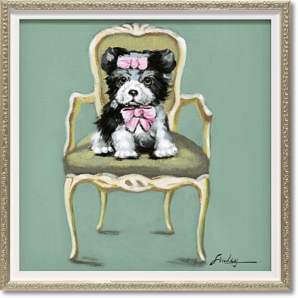 絵画 額入り オイルペイント 「パピー オン チェア(Sサイズ)」 プレゼント インテリア おしゃれ 雑貨 壁掛け 油絵 アート ポスター