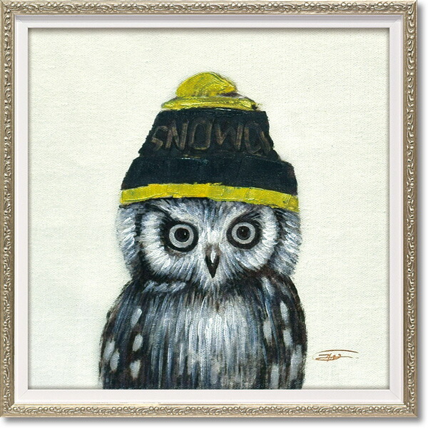 絵画 額入り オイルペイント 「ニットキャップ オウル(Sサイズ)」 プレゼント インテリア おしゃれ 雑貨 壁掛け 油絵 アート ポスター