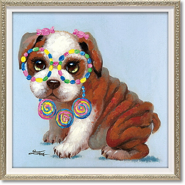 絵画 額入り オイルペイント 「ロリポップ パピー(Sサイズ)」 プレゼント インテリア おしゃれ 雑貨 壁掛け 油絵 アート ポスター