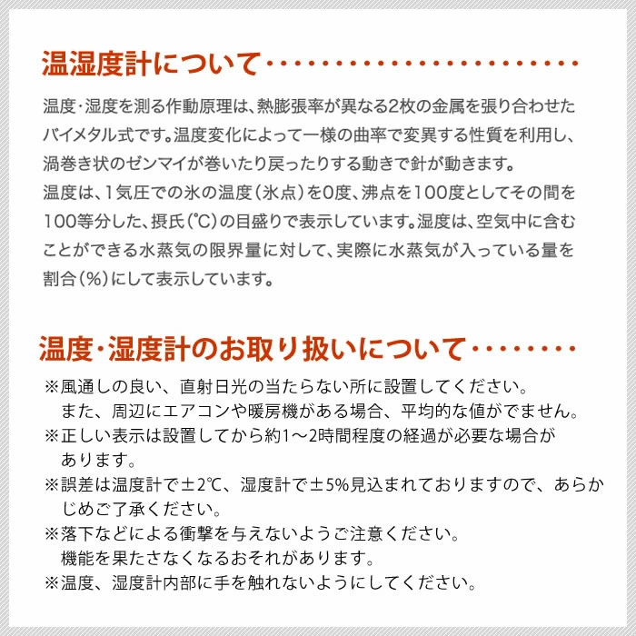 | ※こちらの掛け時計は、温度・湿度計付きです。 ※温度・湿度計は設置してから1〜2時間程度の経過が必要な場合があります。 |