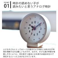 小さな子どもにとっては1〜12の数字だけで時刻を理解するのは難しいもの。そこで、時を示す12進法を内側に、分や秒を示す60進法を外側に表記していて、時針と分針(秒針)がそれぞれ対応する数字を指し示すようになっています。