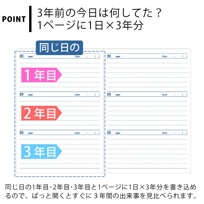 | 日記帳 3年日記 アーティミス 3年日記帳 B6 連用日記 フリータイプ 家族 成長記録 ダイアリー 交換日記 出産 育児日記 1日7行 |