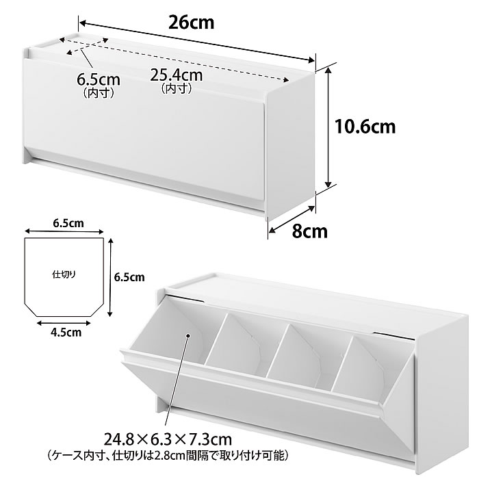 | サイズ 本体:約W26×D8×H10.6cm ケース:W24.8×D6.3×H7.3cm 仕切り間隔:W2.8cm |