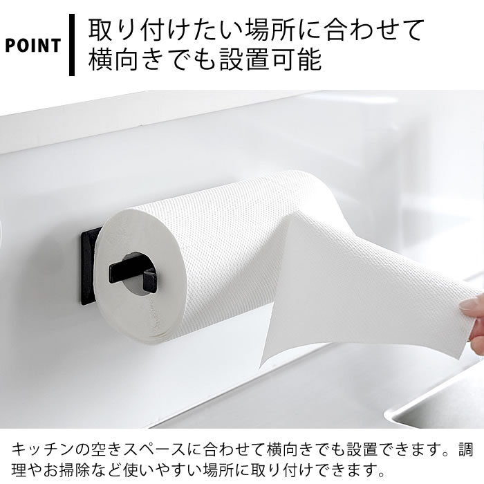 | ※直径11×幅23cm以内、芯の直径3.6cm以上のキッチンペーパーロール ※キッチンペーパーロールのサイズや形状によっては収納できない場合があります。 ※使用できる面 マグネットがつく凹凸のない平らな面 スチール面 |