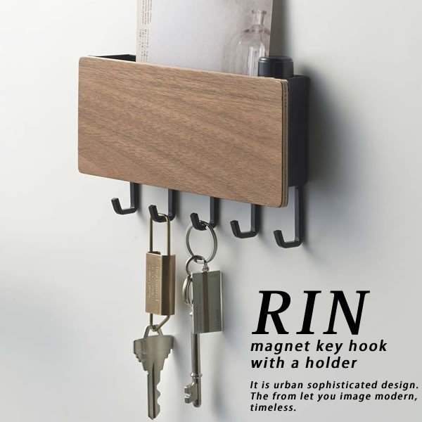 キーフック ホルダー付きマグネットキーフック リン 壁掛けフック ウォールフック 鍵掛け マグネット 木製 北欧 印鑑 収納 鍵 フック 玄関