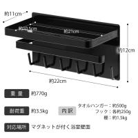 | 耐荷重 合計:約3.5kg 【内訳】棚:約1.5kg/フック:ひとつあたり:約250g/タオルハンガー:約500g |