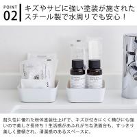 本体はキズが付きにくく、サビにも強い粉体塗装が施された丈夫なスチール製で、水周りも安心してお使いいただけます。底には設置面を傷付けにくいシリコンクッション付き。