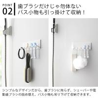 歯ブラシはもちろんの事、シェーバーや電動歯ブラシの詰め替え、バス小物なども引っ掛けて収納できます。