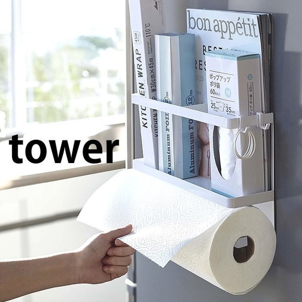 | マグネットキッチンペーパー&ラップホルダー タワー tower キッチンペーパーハンガー キッチンペーパーホルダー 冷蔵庫横ラック キッチンラック 4396 4397 シンプル スタイリッシュ コンパクト ホワイト ブラック コストコ 海外製 大判 キッチンペーパー ラップ ホイル ビニール袋 レシピ チラシ 輪ゴム 山崎実業 yamazaki |