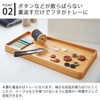 木蓋は裏返すとトレーになるので作業時に細かな部品などを置くのに便利。フチの部分が高さ約1cmあるので転がりやすいものや散らばりがちな小物類でも安心です。
