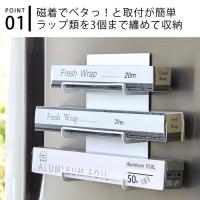 | 仕様 【対応個数】 ラップ類3個まで収納可能 【対応壁面】 マグネットの付く平らな面・スチール壁面 |