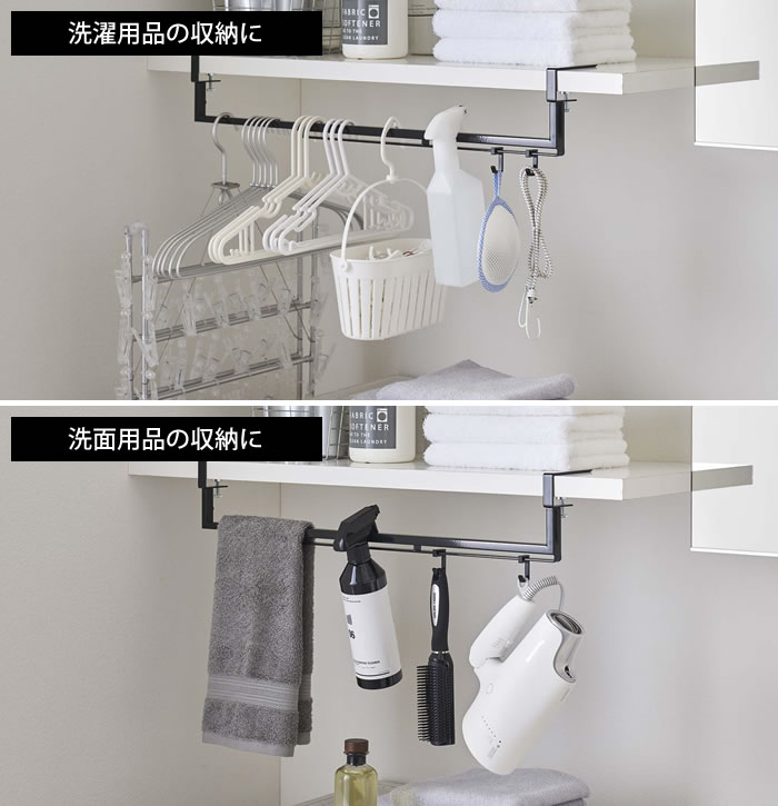 | 伸縮棚下収納ハンガー タワー tower ハンガーラック 引掛け収納 棚下ハンガー収納 ランドリー収納 洗濯小物 ドライヤー タオル 吊り下げ戸棚 作り付け戸棚 白 黒 ホワイト ブラック タワーシリーズ 5646 5647 山崎実業 yamazaki ヤマジツ 伸縮タイプ |